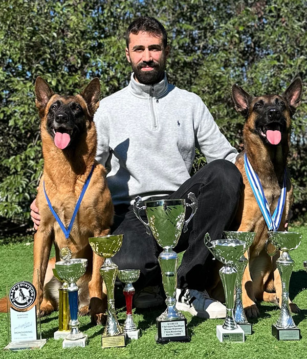 Με τα σκυλιά αυτά πέτυχε την επιτυχή ολοκλήρωση των εξετάσεων BH/VT και Mondioring 1, θέτοντας τις βάσεις για μια σταθερή αθλητική πορεία.